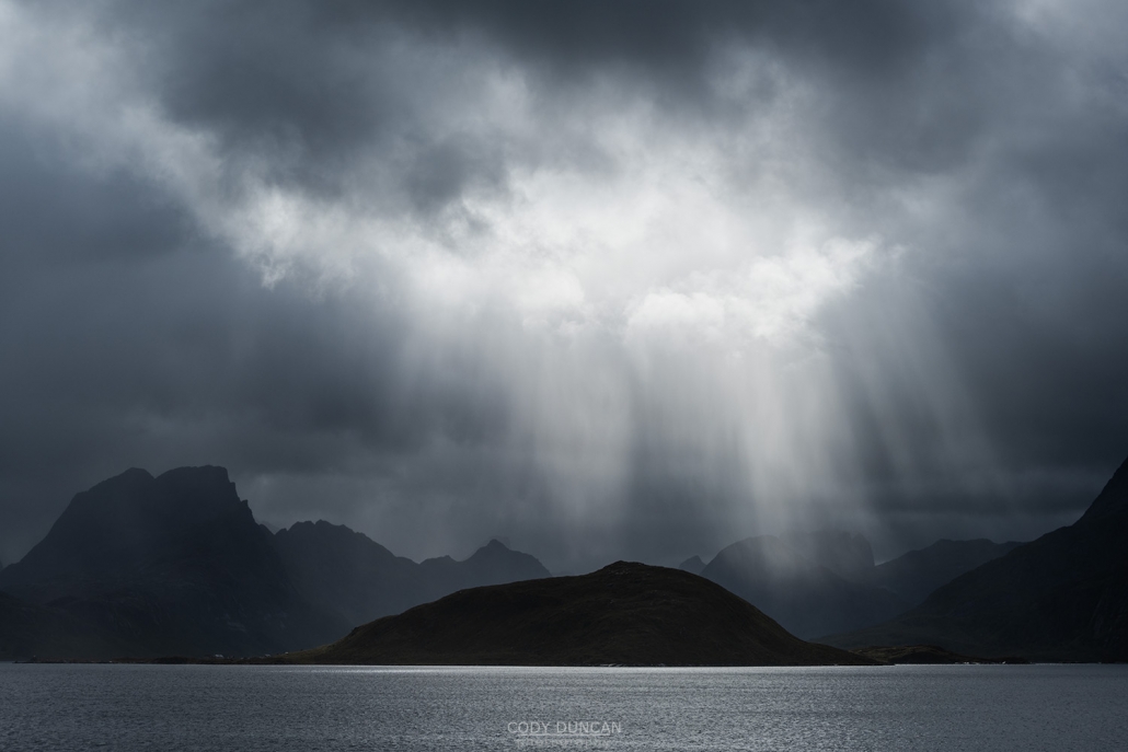 Photo: Autumn rain showers over Selfjorden, Moskenesøy, Lofoten Islands, Norway. September 2, 2020
