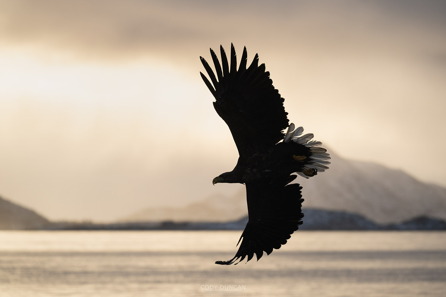 Photo: White-Tailed Sea Eagle silhouetted against winter sky, Lofoten Islands, Norway. February 6, 2026. 12:45