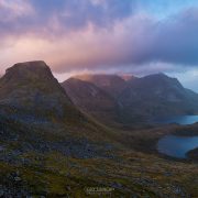 From Fageraskaret pass, you want to head in the general direction of the low part of the ridge to the left of Branntuva. The route across the hillside is a mixture of rock, grass, and bog. In general, keeping to the middle of the route seems to be the best option – too low and it gets boggy, too high and it’s a bit more rocky. There is a little bit of a steep section upon final approach, but it shouldn’t cause any difficulties if you’ve made it that far.