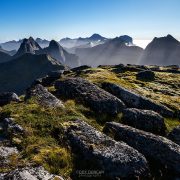 The summit of Branntuva is a wild and lonely place. A somewhat obscure mountain of moderate height, there is no trail leading to the flat-broad summit, ending dramatically in vertical cliffs on one side. But just because few people travel to this slightly-difficult to reach peak, doesn’t mean the views can’t compete with some of Lofoten’s more popular mountains. The highlight of this mountain is the spectacular view over Horseid beach.